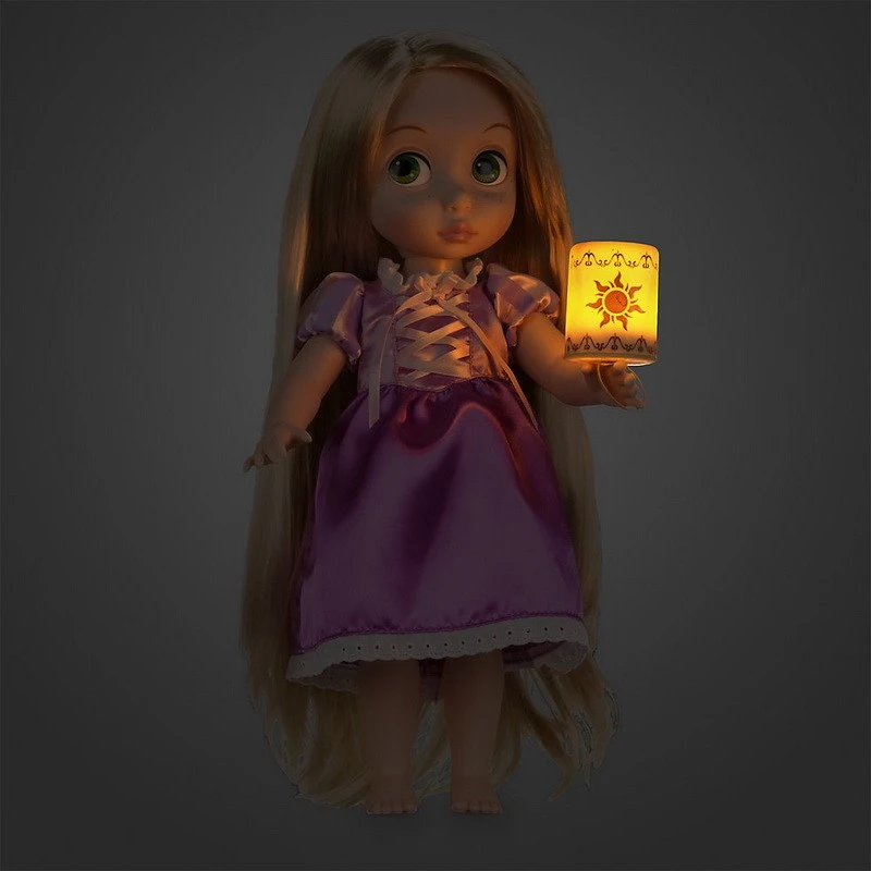 Nos designers Disney ont imaginé Raiponce en petite fille dans cet adorable coffret cadeau de la collection Animators ! Accompagnée de deux amis en peluche, d’une lanterne allumée et d’un chevalet personnalisable, cette Raiponce musicale est un vrai tréscr !