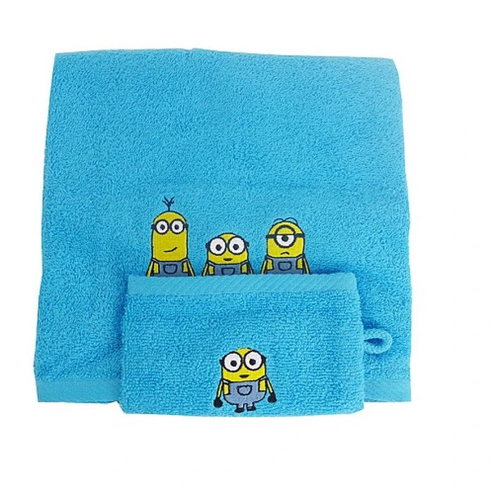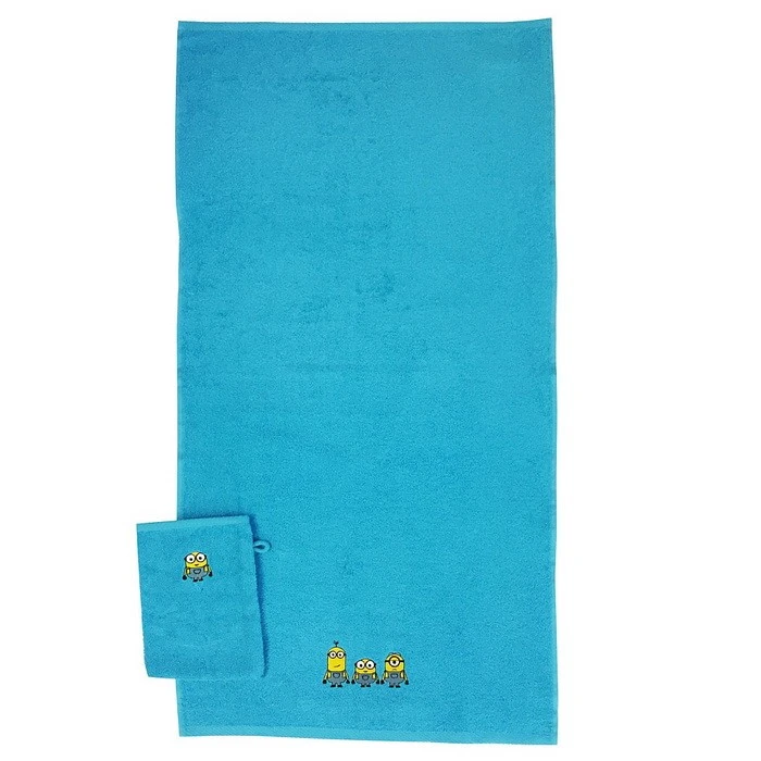 Pack éponge composé d’une serviette éponge et d’un gant de toilette à l’éfigie des Minions.