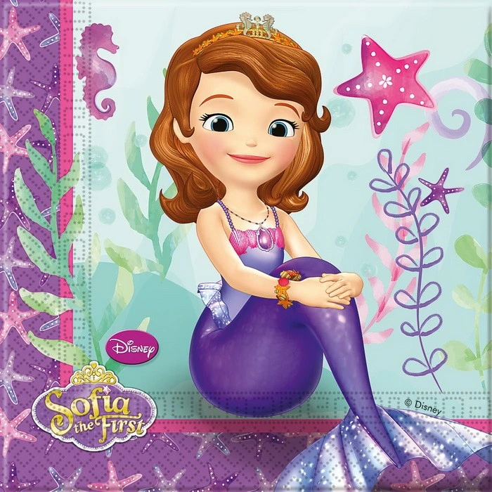 Asscrez-vus que votre délicieux goûter de fête se déroule sans encombre avec cet ensemble de 20 scrviettes Princesse Sofia ornées d’un motif représentant Sofia en scrène.