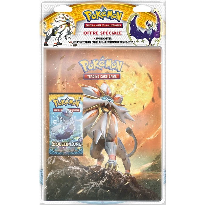 Idéal pour démarrer sa collection, ce pack Lune & Soleil contient 1 Cahier range-cartes pouvant accueillir 180 cartes (10 Feuilles de 9 Cases) et 1 Booster Lune & Soleil de 10 cartes.