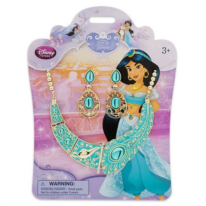 Cette parure de bijoux scintillants est parfaite pour un voyage en tapis volant ! Le collier doré étincelant et les boucles d’oreilles à clips asscrties sont identiques aux bijoux portés par Jasmine.