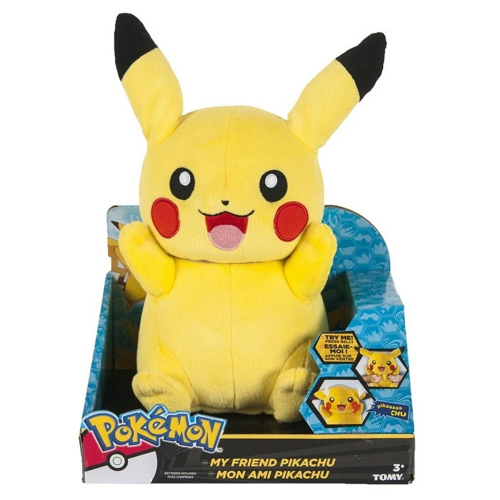 Peluche à fonction toute douce à leffigie de Pikachu ! Câlinez-le pour lentendre parler : Pressez son ventre : ses oreilles se baissent, ses joues séclairent, Pikachu énonce plusieurs phrases. Pressez encore pour entendre plus de sons ! Une fois posé, Pikachu est demandeur de câlins ! Peluche interactive qui saura réconforter les enfants !