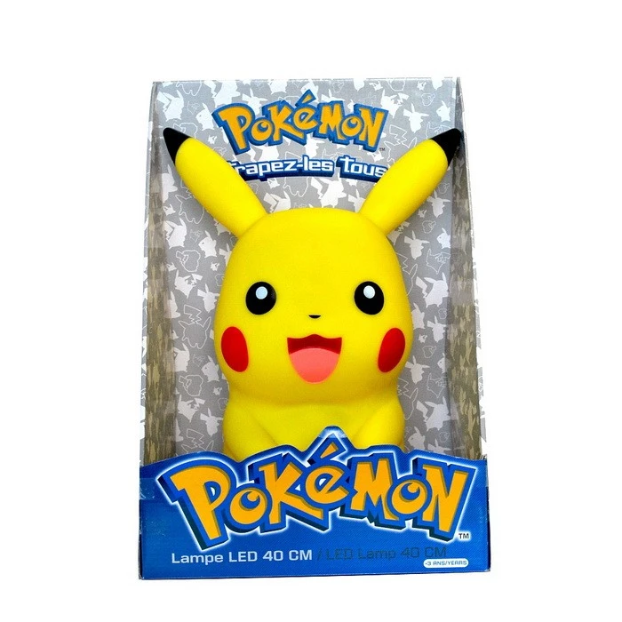Complétez votre collection de dresseur grâce à la lampe LED Pikachu 40 cm. Cette réplique très réussie du plus célèbre des Pokémon trônera fièrement dans votre chambre ou votre salon. Ce modèle sans fil est fabriqué en matière souple et dispose d’un interrupteur On/Off. Il suffit de 3 piles AAA pour voir Pikachu prendre des couleurs et vous illuminer dans la nuit.